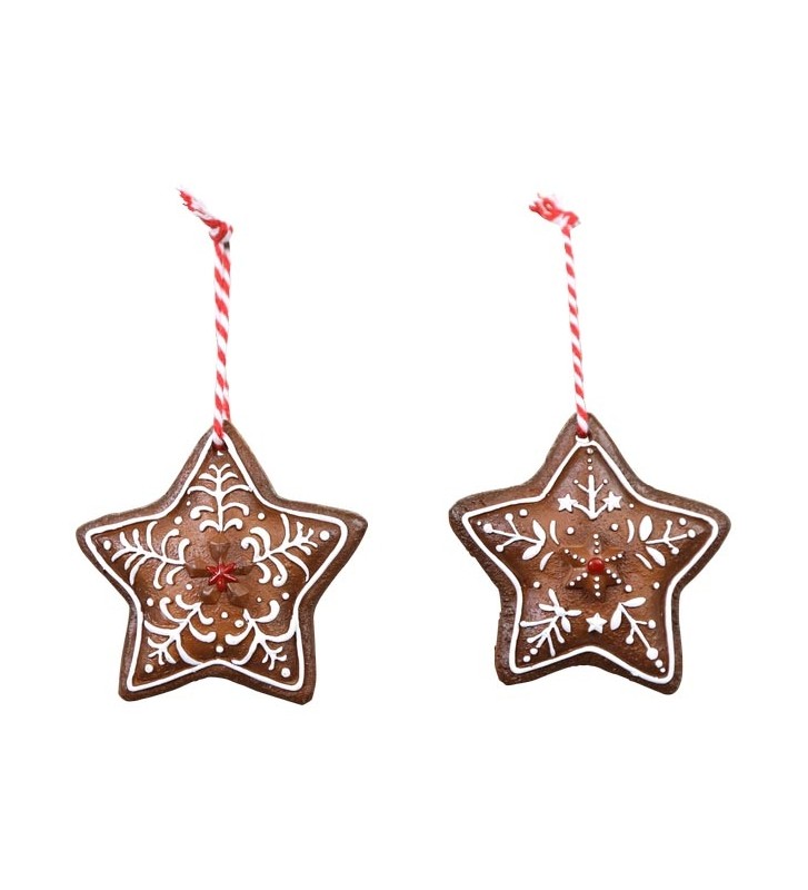 XMAS 2-er SET Lebkuchen Sternhänger Gingerbread, Polyresin, ca. 7,5x7,5x1 cm