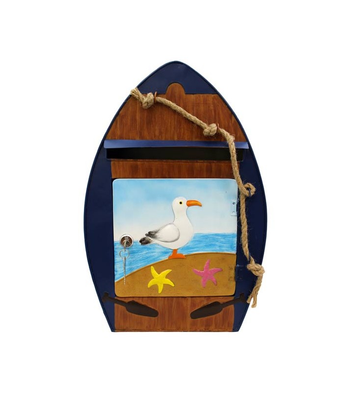 Briefkasten mit Möwenmotiv auf der Vorderseite und Seil. Masse: Höhe ca. 45 cm x Breite ca. 31 cm x Tiefe ca. 14 cm. Der Briefkasten wurde mit viel Liebe zum Detail verarbeitet und wird mit einer Aufhängevorrichtung geliefert. Der Briefkasten ist ein schöner Blickfang vor der Haustüre.