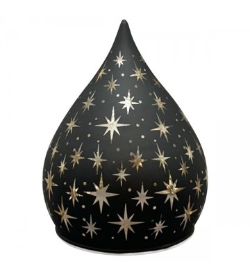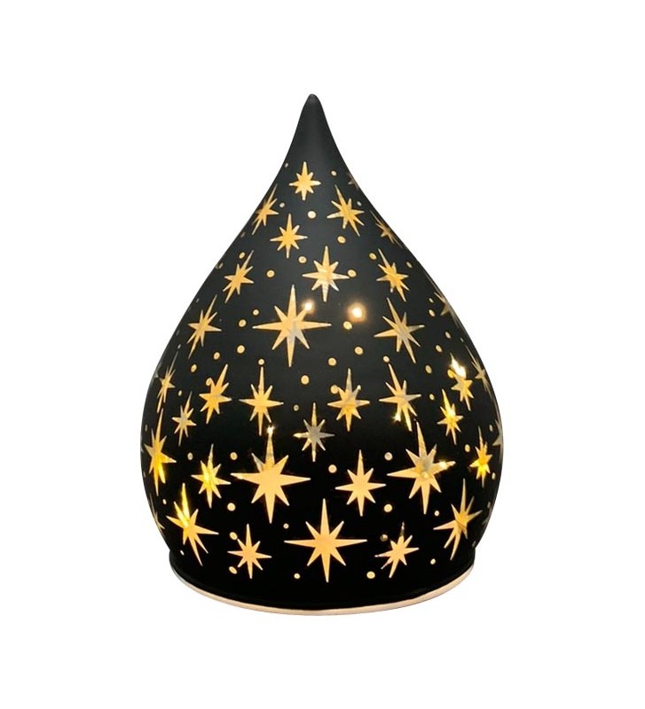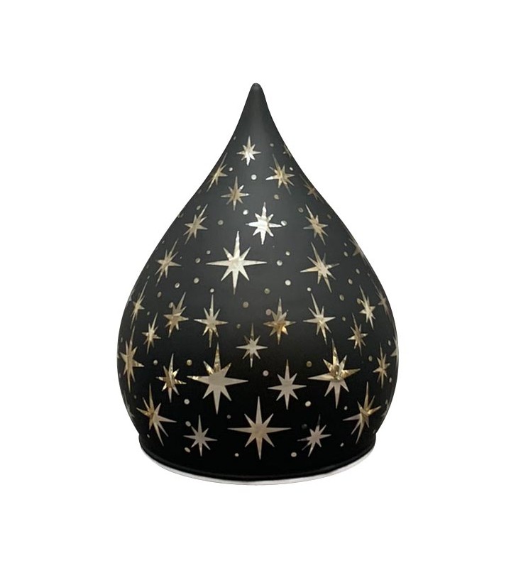 XMAS LED Licht Lumière, schwarz, Glas, 10x10x12 cm mit Timerfunktion 6H/18H, ohne Batterie (3xAA). Wunderschönes LED Licht in Tropfenform in schwarz mit Sternen. Gerade in der Weihnachtszeit eine festliche Lichtquelle um eine romantische Atmosphäre zu schaffen.