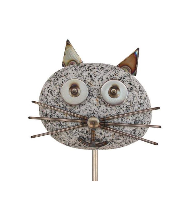 Gartenstecker Katzenkopf am Stab ca. 120 cm hoch. Aus Edelstahl und Granit sehr hochwertig und liebevoll gearbeitet.