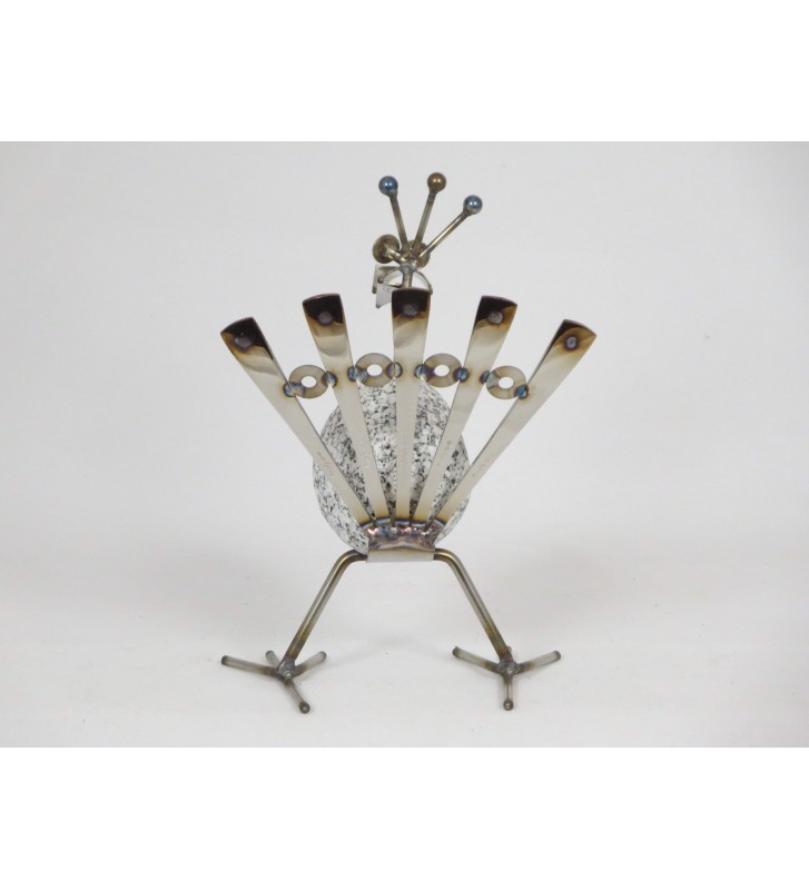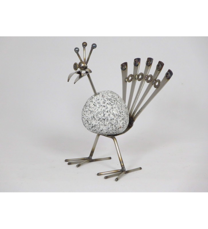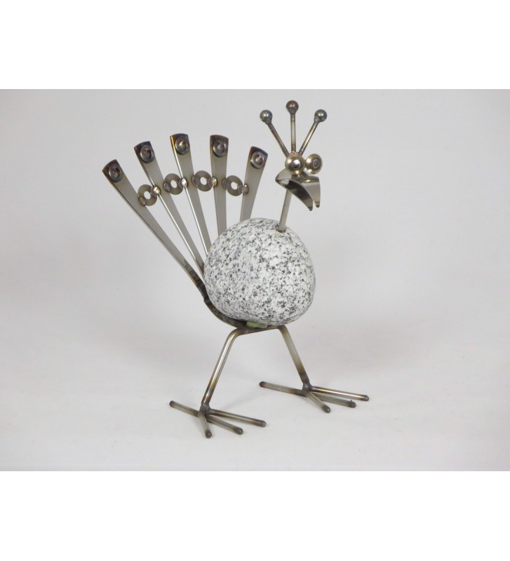 Steintier Pfau ca. 20cm hoch aus Granit und Edelstahl