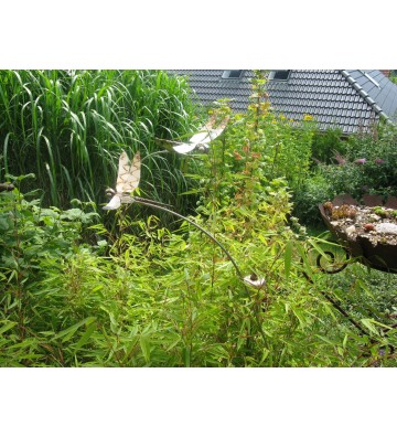 Gartenstecker Schmetterling ca.200 cm lang an einem zweigeteilten Schwingstab aus Edelstahl mit liebevoller Verzierung und Branding