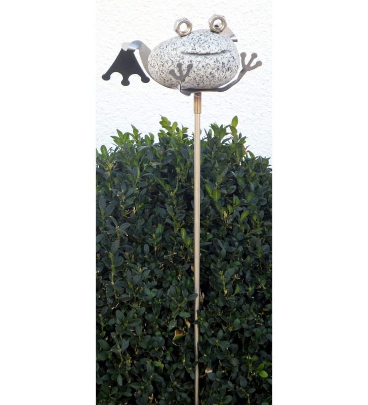 Gartenstecker Frosch ca. 70cm lang aus Granit und Edelstahl