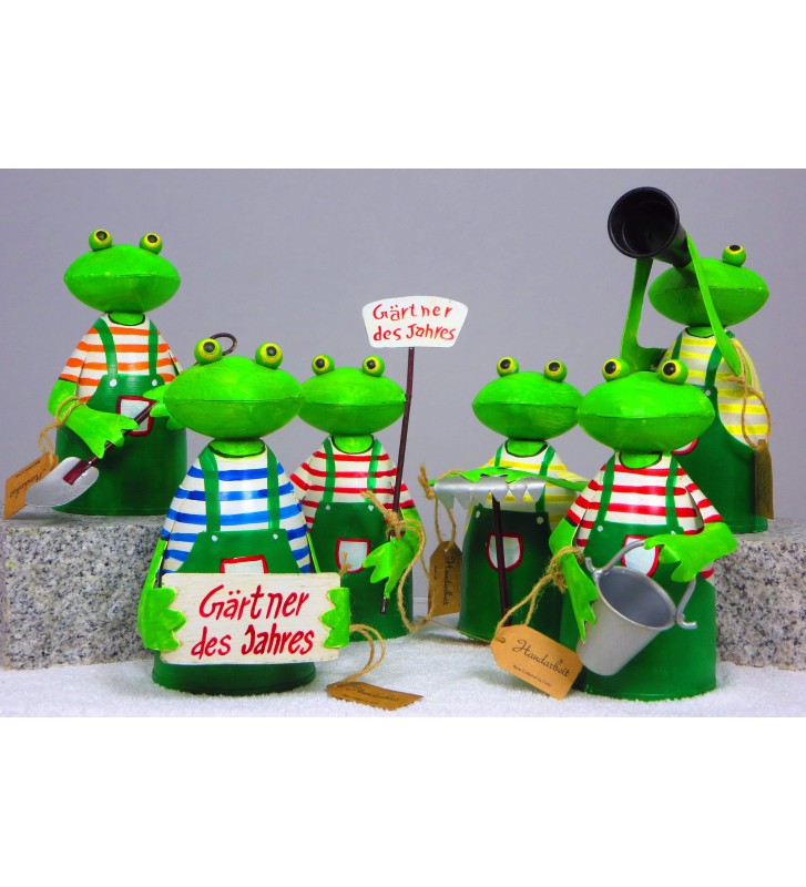 Das Set Zaunhocker Frosch aus Metall in liebevoller Handarbeit bemalt, wird mit folgenden Zaunhockern geliefert: