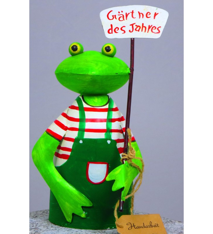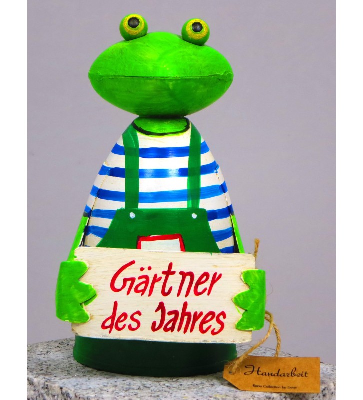 * Zaunhocker Frosch mit Schild Quer "Gärtner des Jahres"