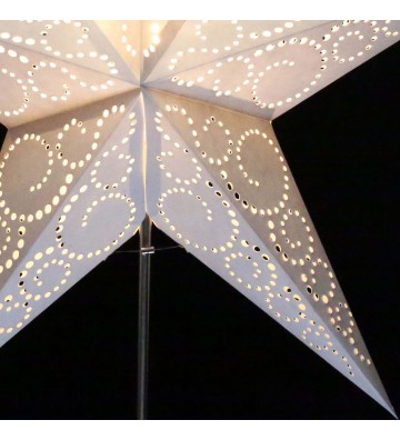 Wunderschöner Leuchtstern im edlen weiß nicht nur für die Advents- und Weihnachtszeit. Dieser Stern ist ein kleines Kunstwerk aus dem Morgenland. Bei Einbruch der Dunkelheit entfaltet er beleuchtet seine strahlende Schönheit.Der Stern wurde in liebevoller Handarbeit gefertigt. Der Leuchtstern ist in einem Stück gefaltet und ist ohne Mühe leicht aufzubauen. Der schöne Stern ist mit einem Magnetverschluss ausgestattet, sodaß er leicht zu öffnen und zu verschließen ist. Der Stern ist aus einem hochwertigen handgeschröpften Papier und ausgestanzt.