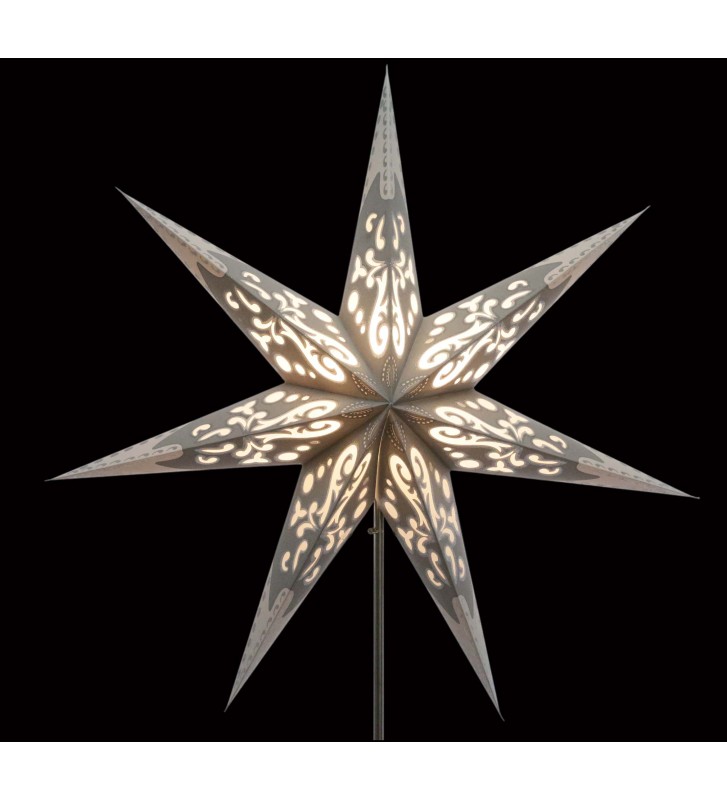 Leuchtstern Curves grau/weiß mit silber Glitter 7 Zacken weiß mit Magnetverschluss ca. 60 cm, Fassung E14 für Glühbirne 40 Watt