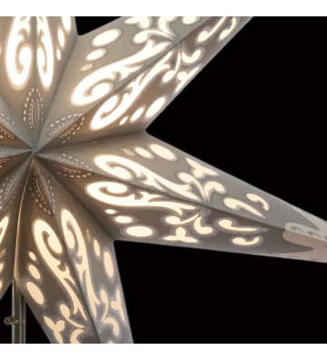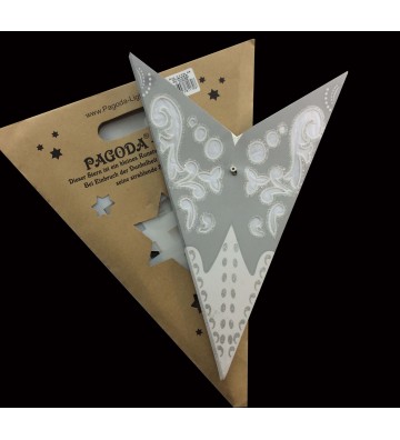 Wunderschöner Leuchtstern im edlen grau/weiß mit silber Glitter, nicht nur für die Advents- und Weihnachtszeit. Dieser Stern ist ein kleines Kunstwerk aus dem Morgenland. Bei Einbruch der Dunkelheit entfaltet er beleuchtet seine strahlende Schönheit.Der Stern wurde in liebevoller Handarbeit gefertigt. Der Leuchtstern ist in einem Stück gefaltet und ist ohne Mühe leicht aufzubauen. Der schöne Stern ist mit einem Magnetverschluss ausgestattet, so dass er leicht zu öffnen und zu verschließen ist. Der Stern hat ein ausgestanztes Muster, hinter dem weißes Transparentpapier geklebt ist..