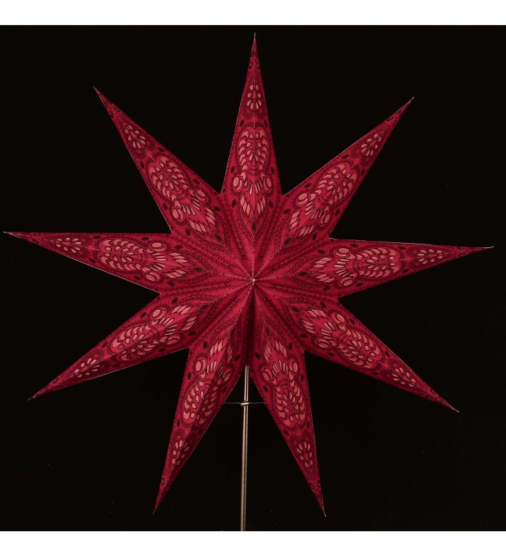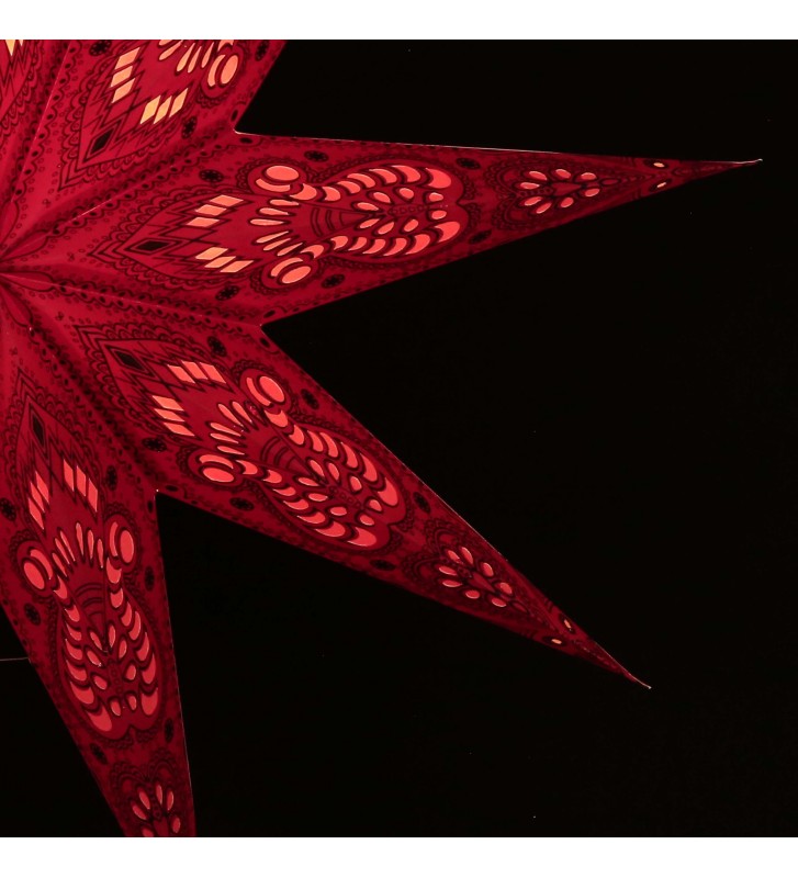 Leuchtstern Ganesha rot/schwarz 9 Zacken mit Zippverschluss, ca. 60 cm groß, Fassung E14 für Glühbirnen 40 Watt