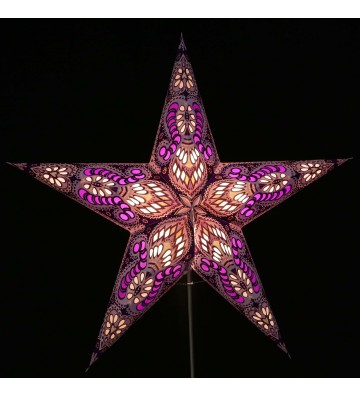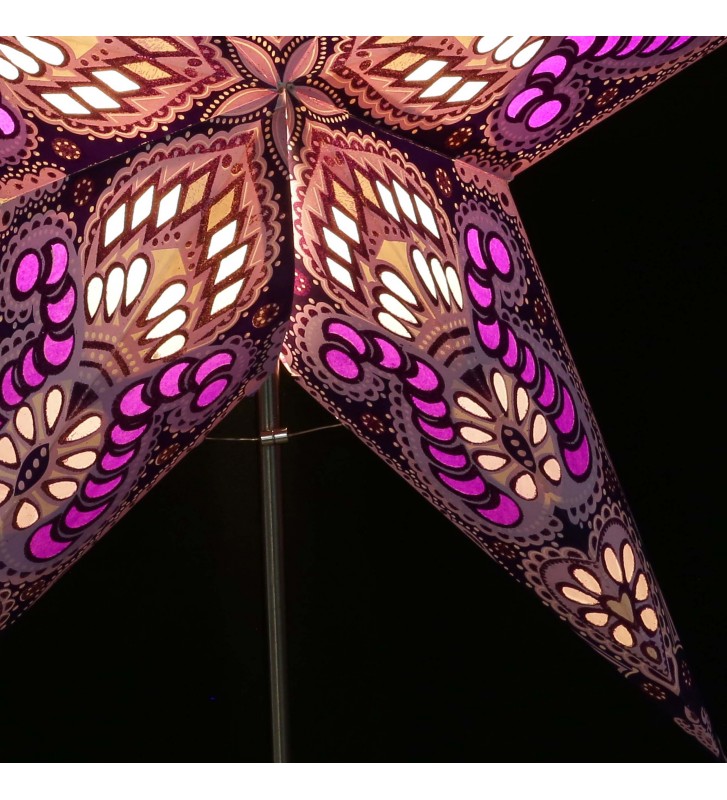Leuchtstern Ganesha lila/glitter 5 Zacken mit Magnetverschluss, ca 60 cm, Fassung E14 für 40 Watt Glühbirne