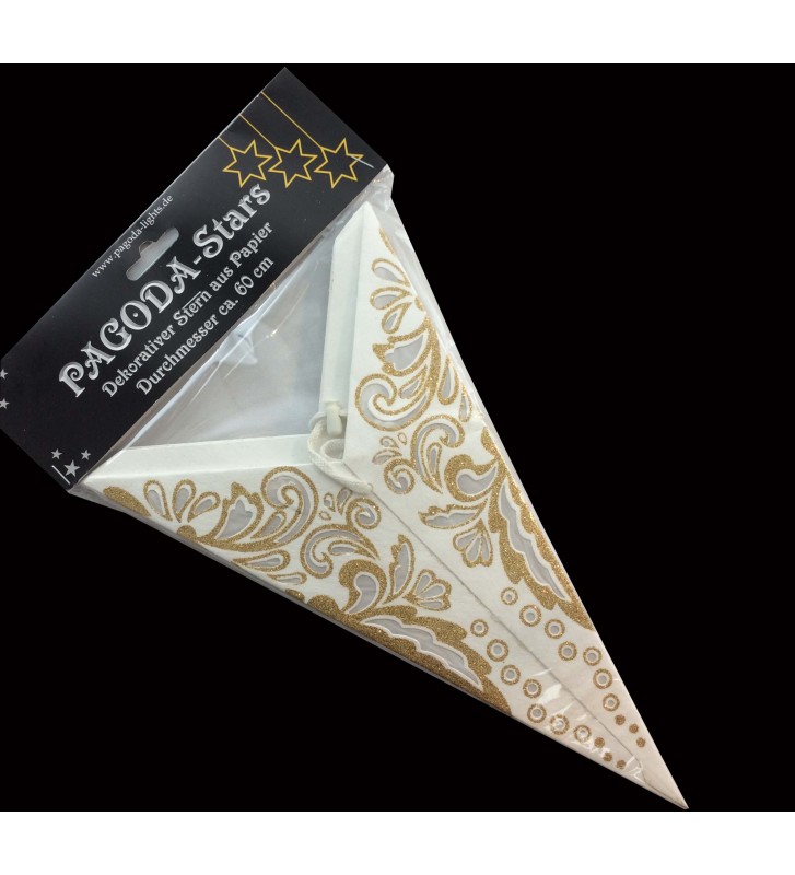 Wunderschöner Leuchtstern in weiß und Gold nicht nur für die Advents- und Weihnachtszeit. Dieser Stern ist ein kleines Kunstwerk aus dem Morgenland. Bei Einbruch der Dunkelheit entfaltet er beleuchtet seine strahlende Schönheit. Der Stern wurde in liebevoller Handarbeit gefertigt. Der Leuchtstern ist in einem Stück gefaltet und ist ohne Mühe leicht aufzubauen. Der schöne Stern ist mit einem Zippverschluss ausgestattet, sodass er leicht zu öffnen und zu verschließen ist. Der Stern ist aus einem hochwertigen Papier und ausgestanzt. Hinter den ausgestanzten Öffnungen wurde farbharmonisch ein Transparentpapier geklebt.